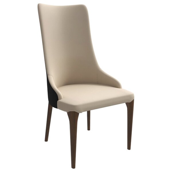 - The dining chair boasts a high backrest for superior upper back and shoulder support, complemented by a chic two-tone color design. The graceful curves of the backrest create a flowing silhouette that contours your spine and elevates its modern look.