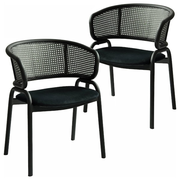 Ervilla Dining Chair in Black Steel Frame with Black Wicker Back and Black Seat, 2PK
