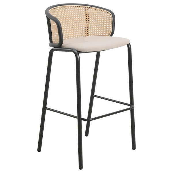 Ervilla Wicker Bar Stool with Fabric Seat and Black Powder Coated Steel Frame, Beige
