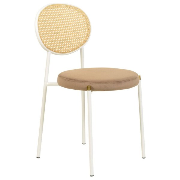 Introducing the Euston Dining Chair, where style, comfort, and durability come together seamlessly. This chair features a sleek white stainless steel frame and an intricately woven rattan backrest that provides a natural aesthetic and optimal breathability. The sturdy base supports up to 330 pounds, ensuring reliable everyday use, while the powder-coated finish resists scratches, rust, and wear, maintaining its sleek appearance over time. The round, plush seat is upholstered in luxurious velvet and filled with high-density sponge, offering superior comfort. Easy spot cleaning keeps it looking fresh with minimal effort. Plastic glides protect your floors and make repositioning easy. Assembly is quick and straightforward with clear instructions included. Enhance your space with the Euston Dining Chair- where elegance meets practicality.