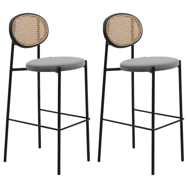 Euston Modern Wicker Bar Stool With Black Steel Frame, Grey, 2PK