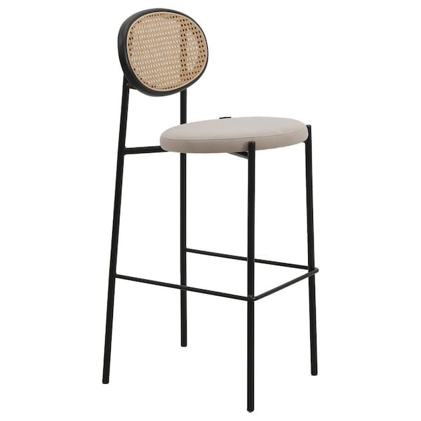Euston Wicker Bar Stool with Black Steel Frame, Beige