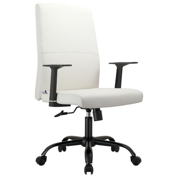Evander Office Chair in Upholstered Leather & Iron Frame, Adjustable Height, Swivel & Tilt, White
