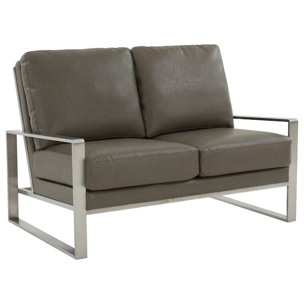 Jefferson Contemporary Faux Leather Loveseat with Silver Frame, Grey