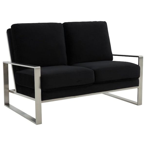 Jefferson Contemporary Velvet Loveseat with Silver Frame, Black