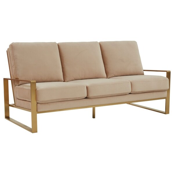 Jefferson Contemporary Velvet Sofa with Gold Frame, Beige