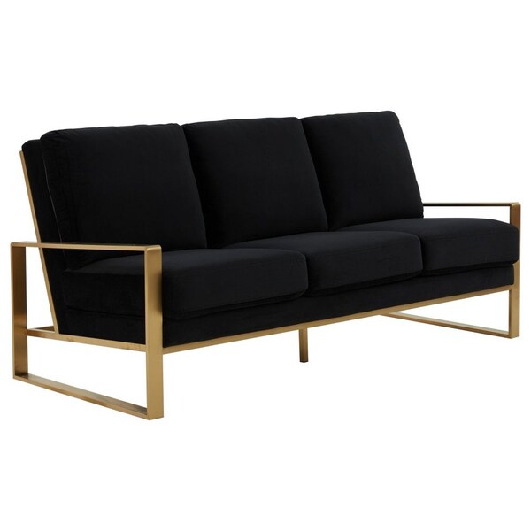 Jefferson Contemporary Velvet Sofa with Gold Frame, Black