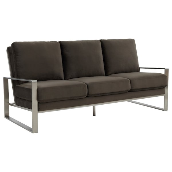 Jefferson Contemporary Velvet Sofa with Silver Frame, Dark Grey