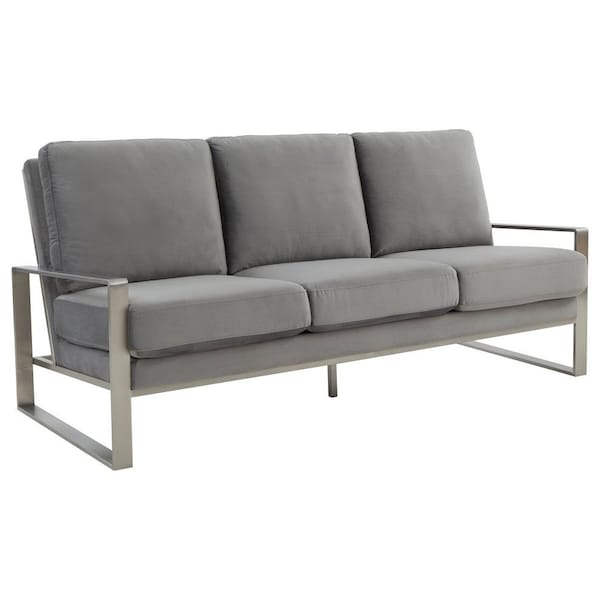 Jefferson Contemporary Velvet Sofa with Silver Frame, Light Grey