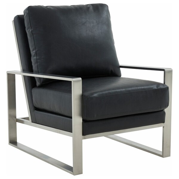 Jefferson Leather Modern Design Accent Armchair with Elegant Silver Frame, Black
