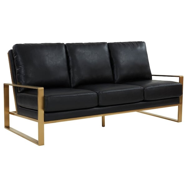 Jefferson Modern Design Leather Sofa with Gold Frame, Black
