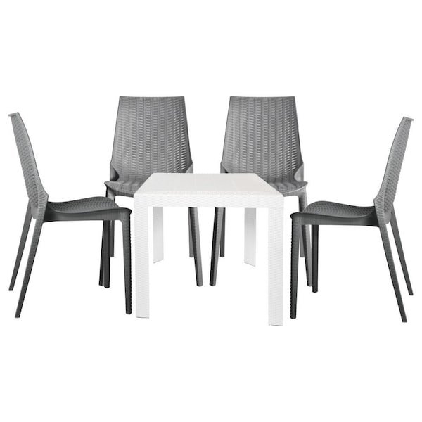 Kent 5-Piece Outdoor Dining Set with Dining Table and Dining Chairs, White/Grey (Discontinued)