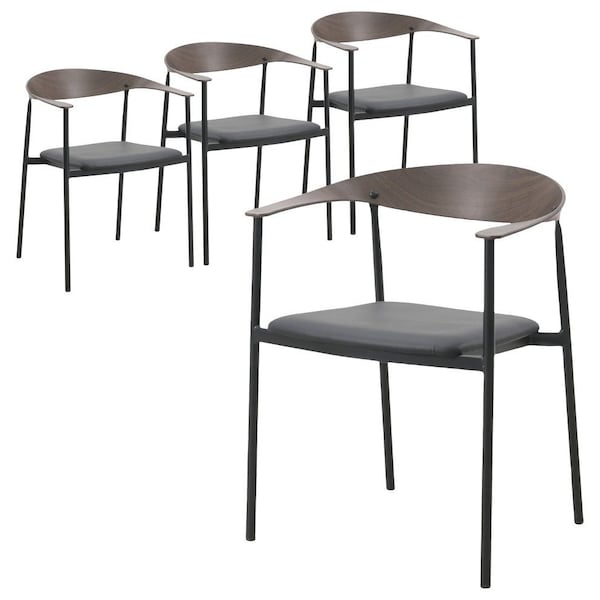Kora Modern Leather Dining Arm Chair with Iron Legs Brown/Black, 4PK