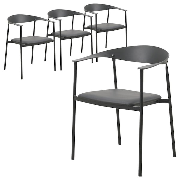 Kora Modern Leather Dining Arm Chair with Iron Legs in Black, 4PK