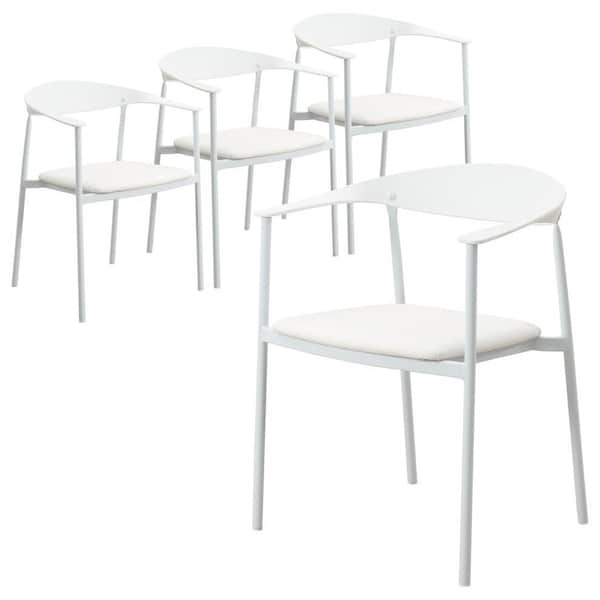 Kora Modern Leather Dining Arm Chair with Iron Legs in White, 4PK