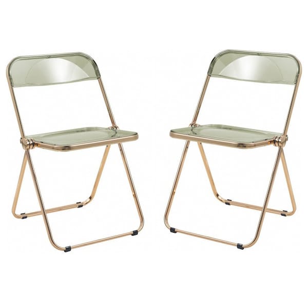 Lawrence Acrylic Folding Chair with Gold Metal Frame, Amber, 2PK