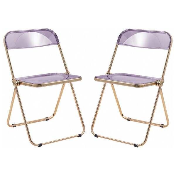 Lawrence Acrylic Folding Chair with Gold Metal Frame, Magenta, 2PK (Discontinued)