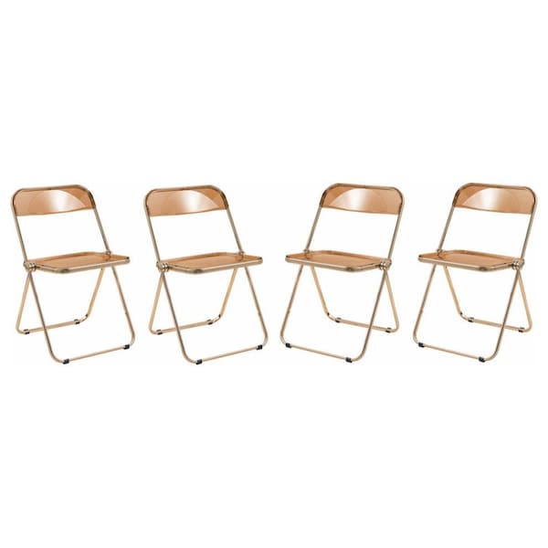 Lawrence Acrylic Folding Chair with Gold Metal Frame, Tangerine, 4PK