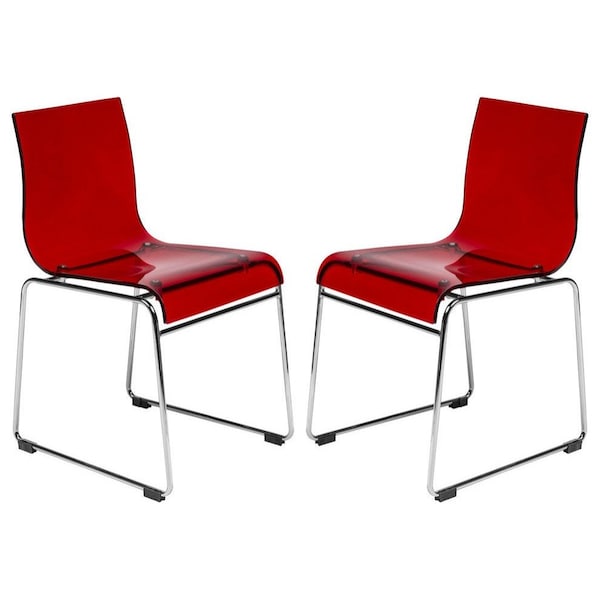 Lima Modern Acrylic Chair, Transparent Red, 2PK (Discontinued)
