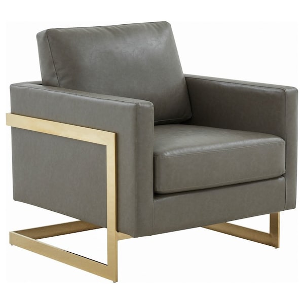 Lincoln Leather Accent Armchair with Gold Frame, Grey