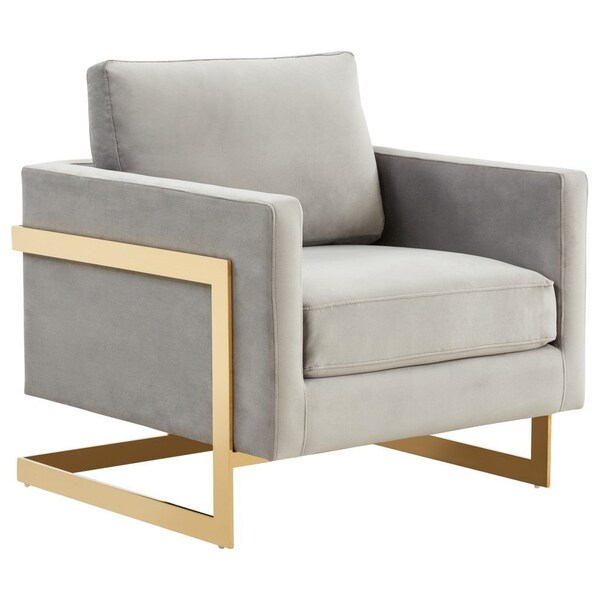 Lincoln Velvet Accent Armchair with Gold Frame, Light Grey