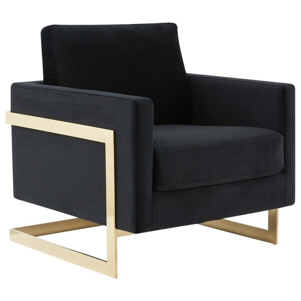 The Lincoln Collection features a classic style that elicits thoughts of modern elegance and grace. Add glamorous definition to your interior space with a Lincoln armchair, designed with simple, modern lines and scaled for use anywhere in your home, the chair's seating area is covered in an elegant velvet that is set off by the splendid gold metal legs. The chair is built with durability and supportive comfort in mind, from the sturdy hardwood solids in the frame to the stainless-steel legs to the high-density foam and fiber padding in the seat and back. The accent armchair brings a regal ambiance to this piece, making this a glamorous addition to your home
