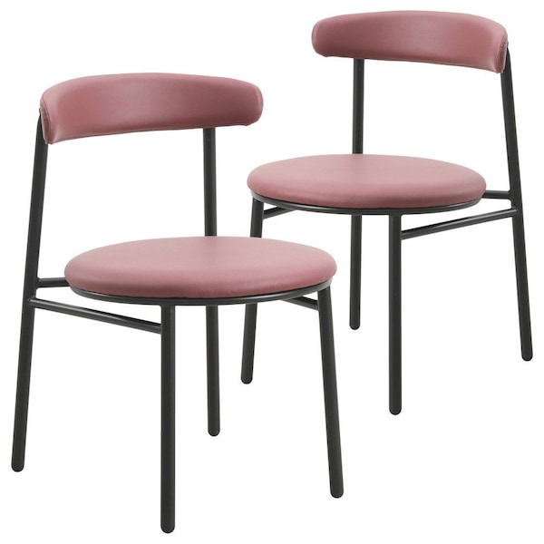 Lume Modern Dining Side Chair in Polyester with Black Steel Frame in Burgundy, 2PK
