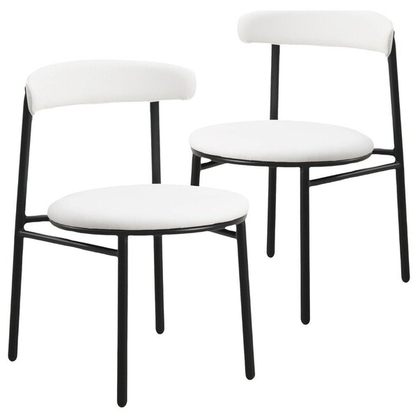 Lume Modern Dining Side Chair in Polyester with Black Steel Frame in White, 2PK