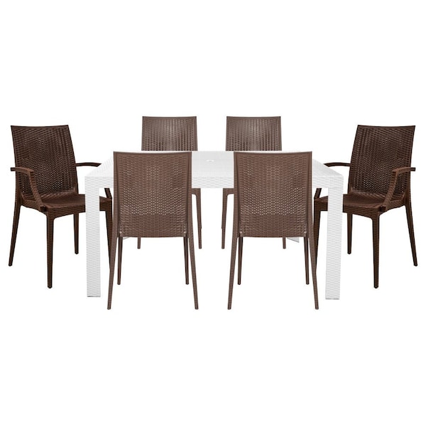 Mace 7-Piece Rectangular Outdoor Dining Set with 4 Side Chairs & 2 Armchairs, White/Brown