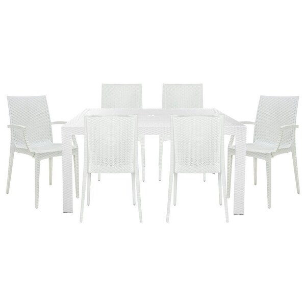 Mace Mid-Century 7-Piece Rectangular Outdoor Dining Set with 4 Side Chairs and 2 Armchairs, White