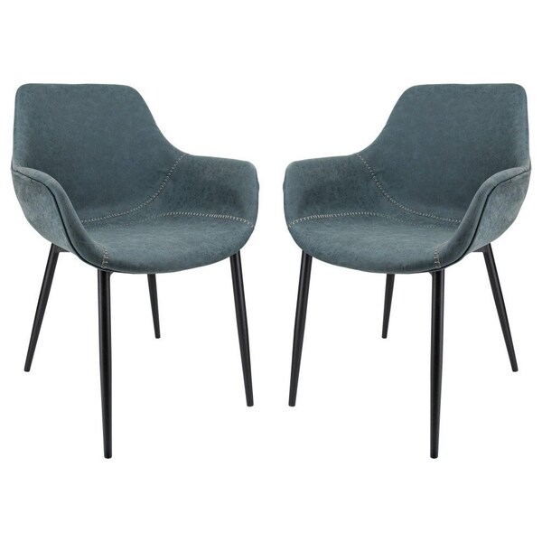 Markley Modern Leather Dining Arm Chair with Metal Legs, Peacock Blue, 2PK