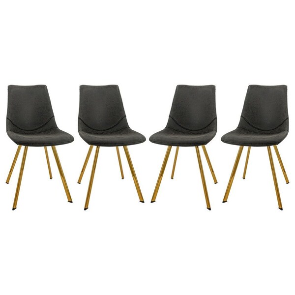 Markley Modern Leather Dining Chair with Gold Legs, Charcoal Black, 4PK