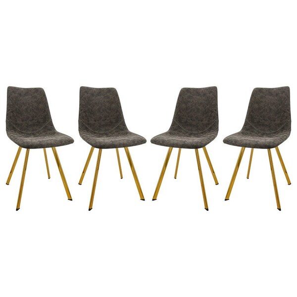 Markley Modern Leather Dining Chair with Gold Legs, Grey, 4PK