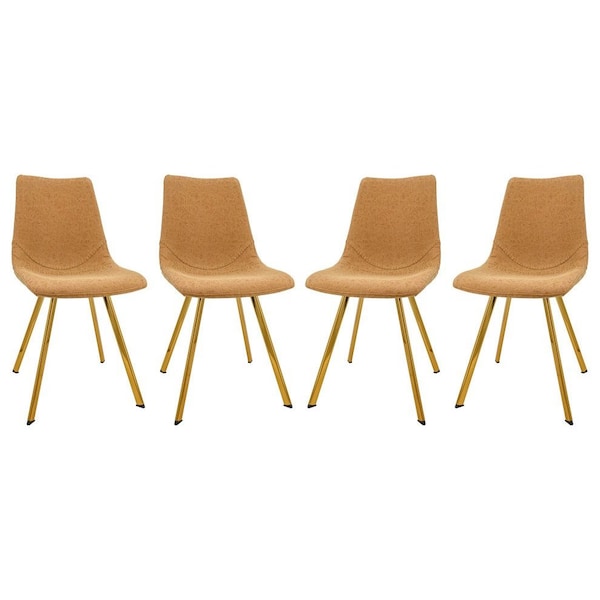 Markley Modern Leather Dining Chair with Gold Legs, Light Brown, 4PK