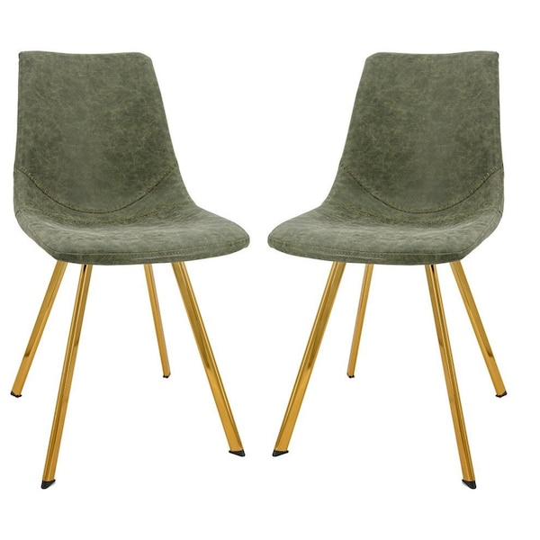 Markley Modern Leather Dining Chair with Gold Legs, Olive Green, 2PK