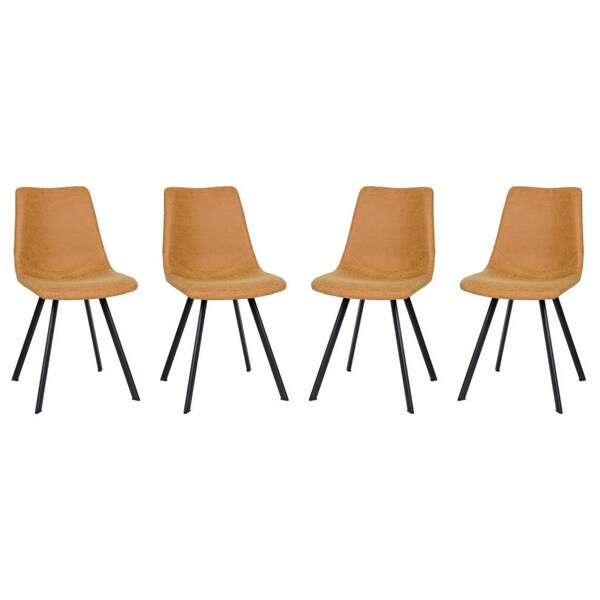 Markley Modern Leather Dining Chair with Metal Legs, Light Brown, 4PK