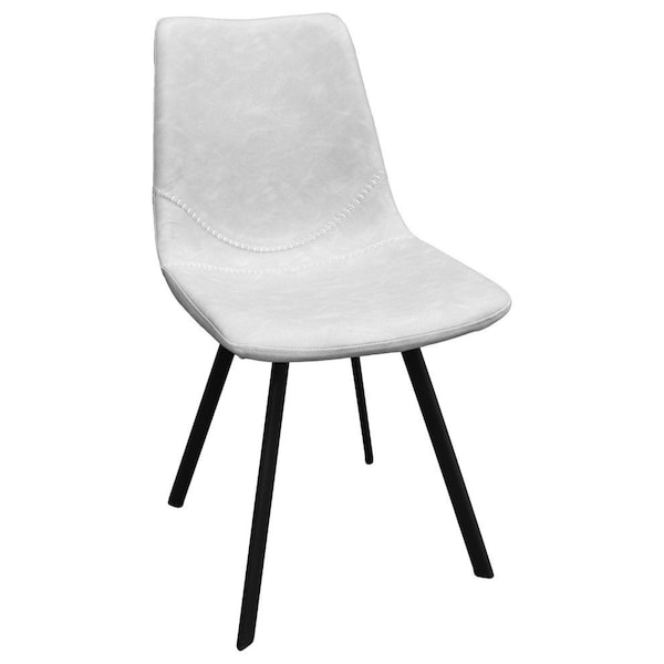 Markley Modern Leather Dining Chair With Metal Legs, Light Grey