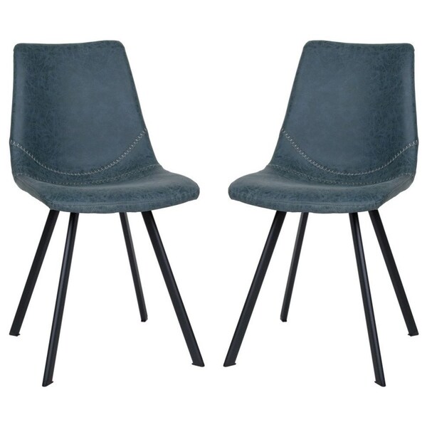Markley Modern Leather Dining Chair with Metal Legs, Peacock Blue, 2PK