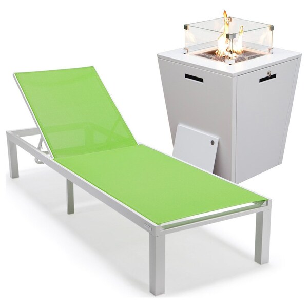 Marlin Modern White Aluminum Patio Chaise Lounge Chair with Square Fire Pit Side Table, Green
