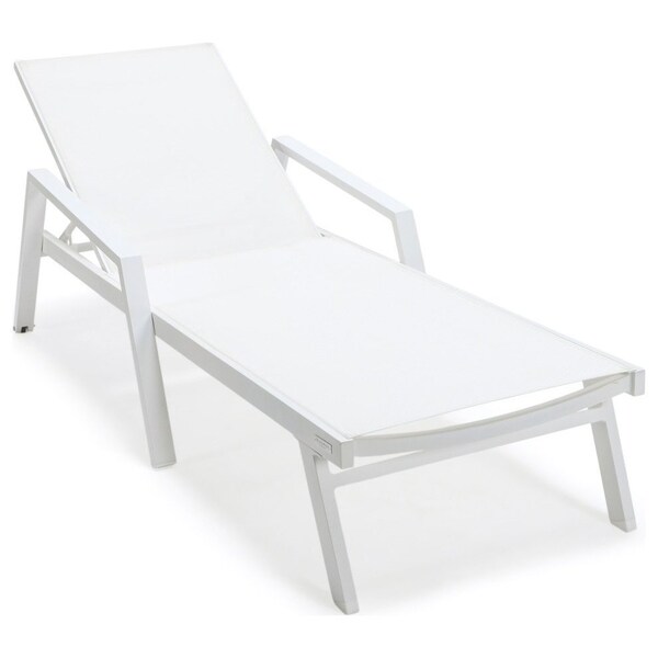 Marlin Patio Chaise Lounge Chair with Armrests in White Aluminum Frame, White