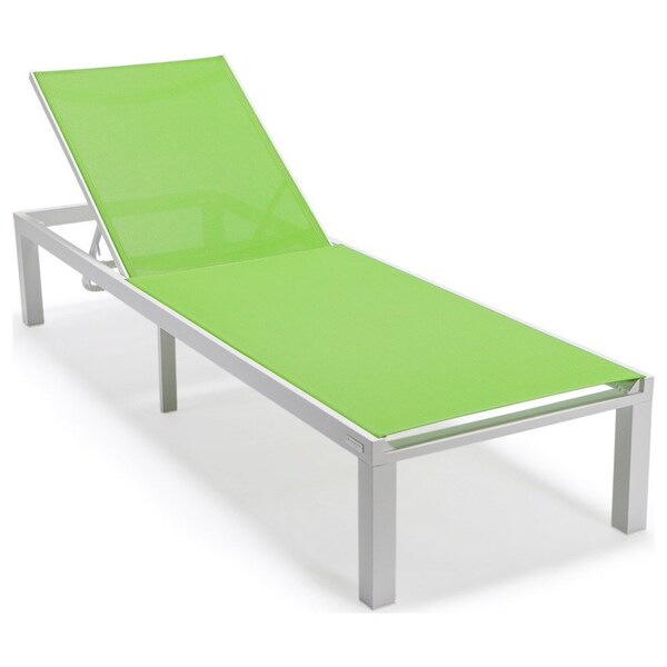 Marlin Patio Chaise Lounge Chair with White Aluminum Frame, Green