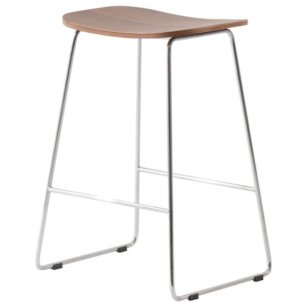 Melrose Modern Wood Counter Stool With Chrome Frame, Walnut