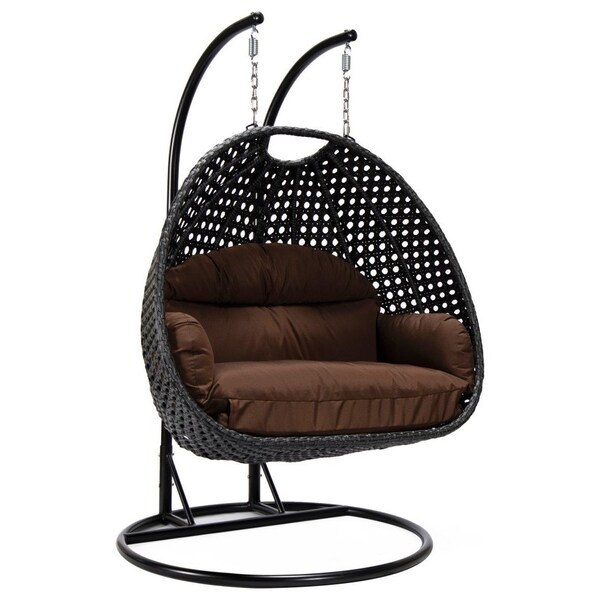 Mendoza Charcoal Wicker Hanging 2 person Egg Swing Chair with Brown Cushions