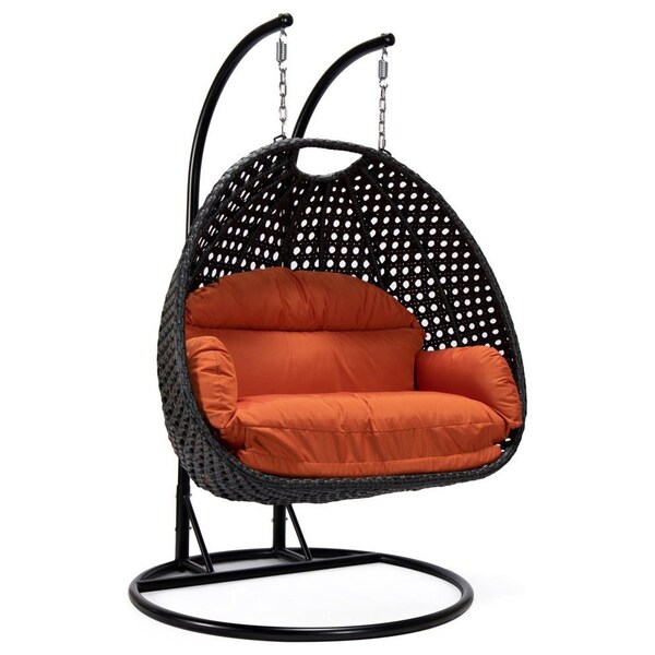 Mendoza Charcoal Wicker Hanging 2 person Egg Swing Chair with Orange Cushions