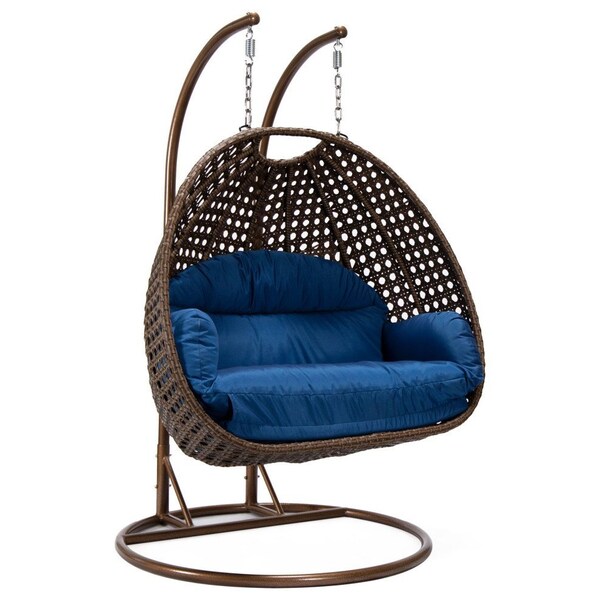 Mendoza Dark Brown Wicker Hanging 2 person Egg Swing Chair with Blue Cushions
