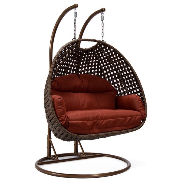 Mendoza Dark Brown Wicker Hanging 2 person Egg Swing Chair with Cherry Cushions