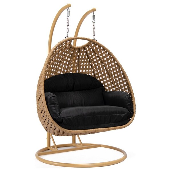 Mendoza Light Brown Wicker Hanging 2 person Egg Swing Chair with Black Cushions