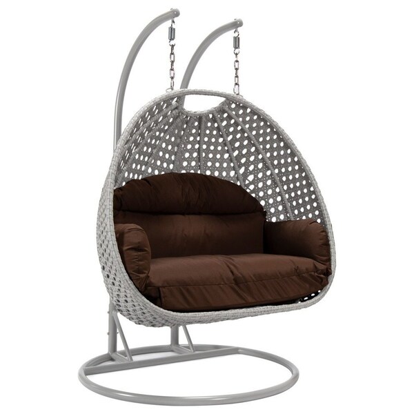 Mendoza Light Grey Wicker Hanging 2 person Egg Swing Chair with Brown Cushions