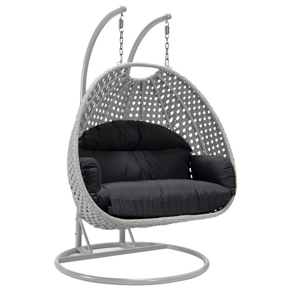 Mendoza Light Grey Wicker Hanging 2 person Egg Swing Chair with Dark Grey Cushions