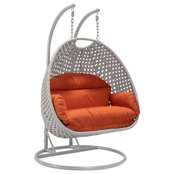 Mendoza Light Grey Wicker Hanging 2 person Egg Swing Chair with Orange Cushions